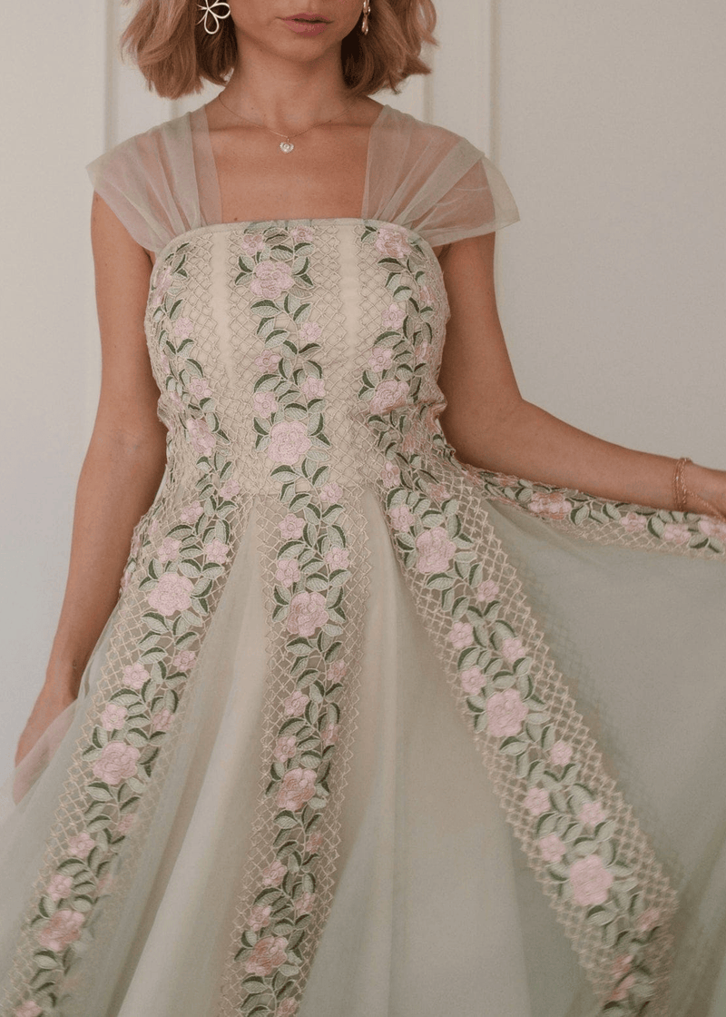 Elodie A-line Floral Midi Dress - Cream