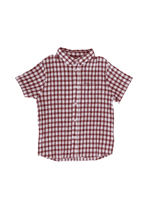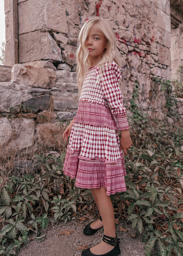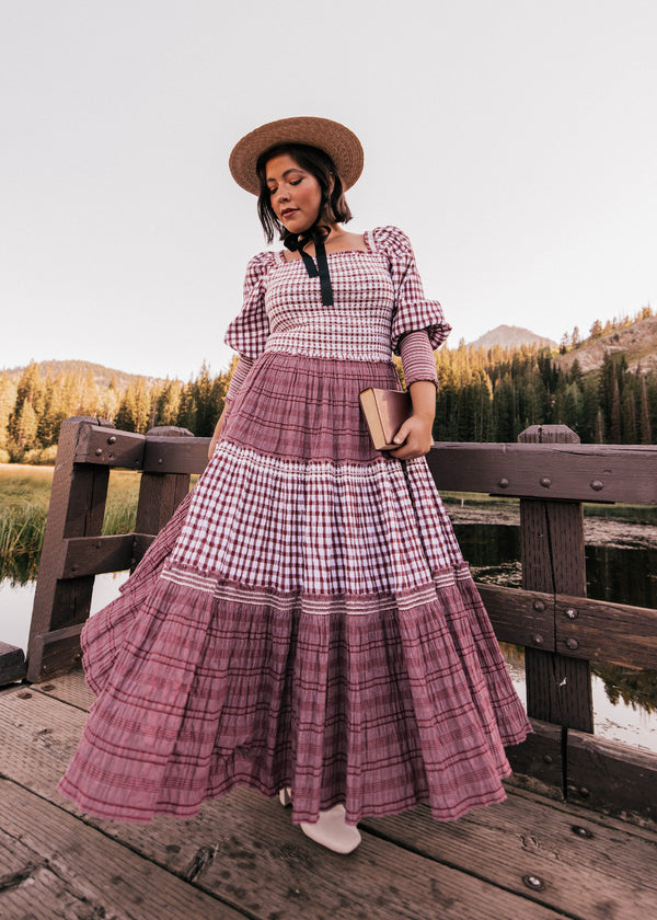 • Pyper Oversized Collar Cotton Puff Sleeve Midi Dress - Red Plaid
