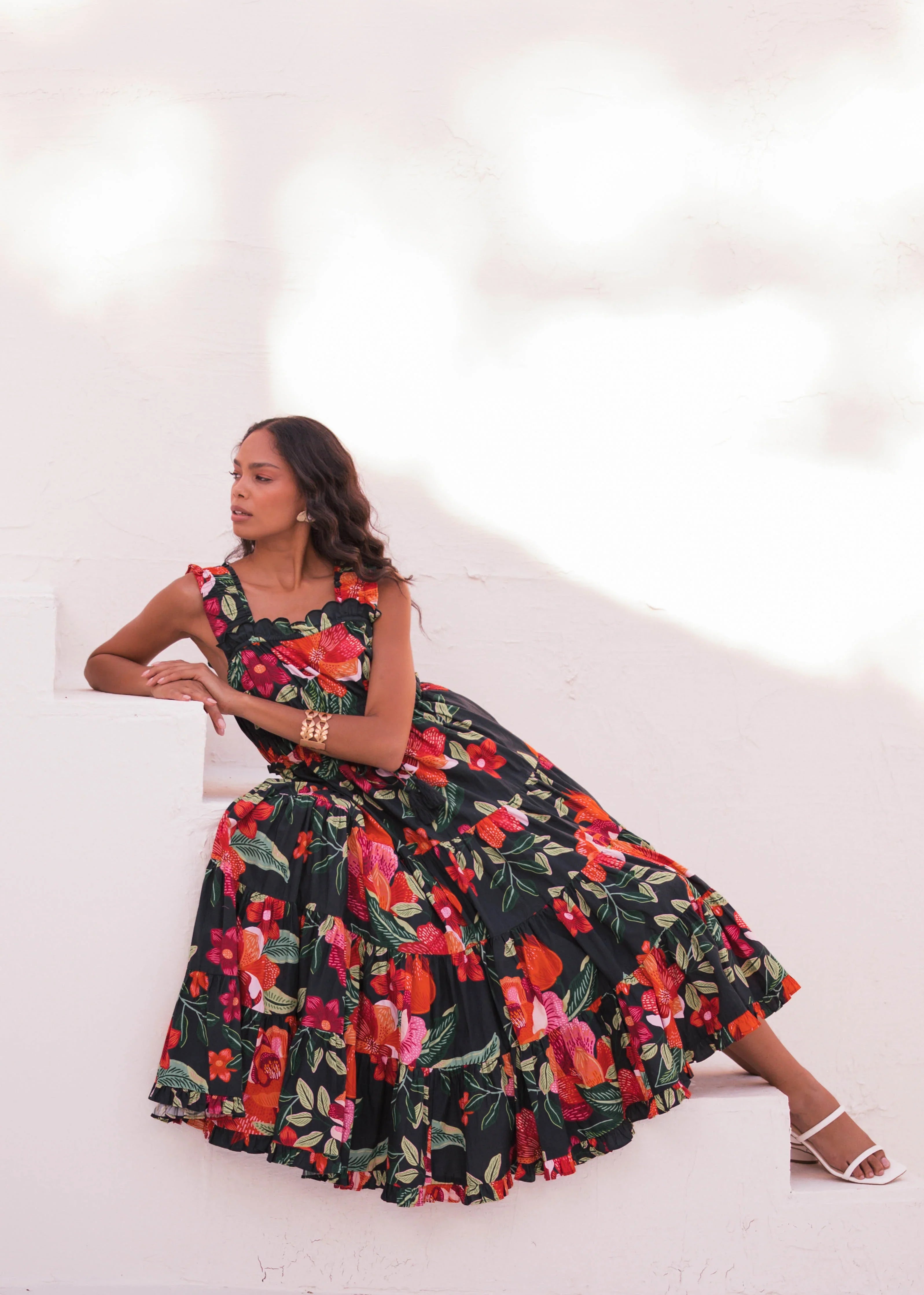 Hibiscus Sleeveless Empire Waist Midi Dress