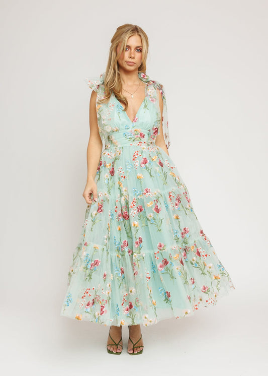 Margaret Floral Midi Dress Green