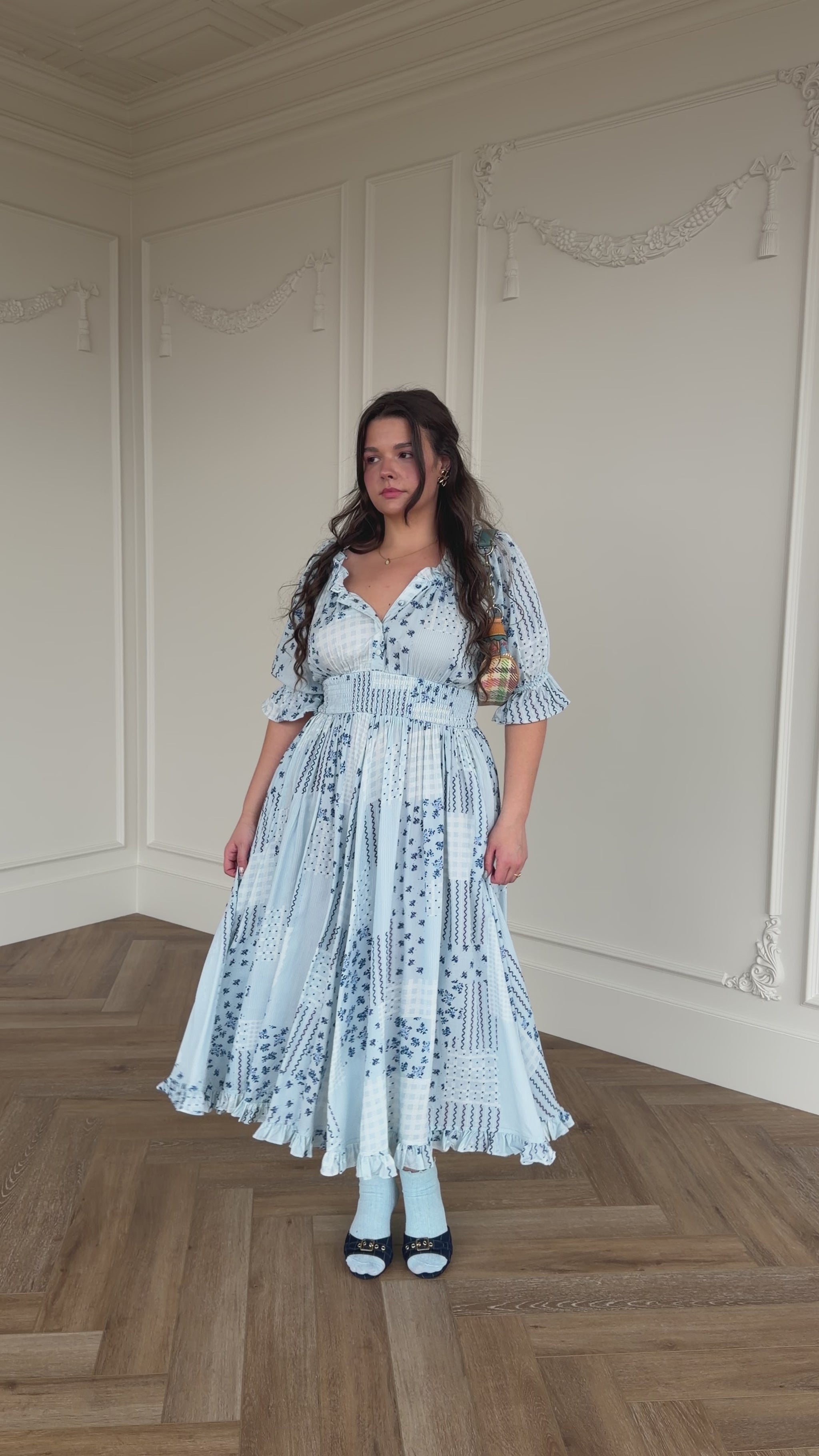 The Alice Dress from our Tea Time Collection is a versatile and stylish piece for any occasion. Features a delicate blue floral print on a soft airy fabric, complemented by a smocked waist and ruffle elastic sleeves for a flattering, feminine silhouette. Perfect for tea parties, garden strolls, or any occasion that calls for a touch of charm.