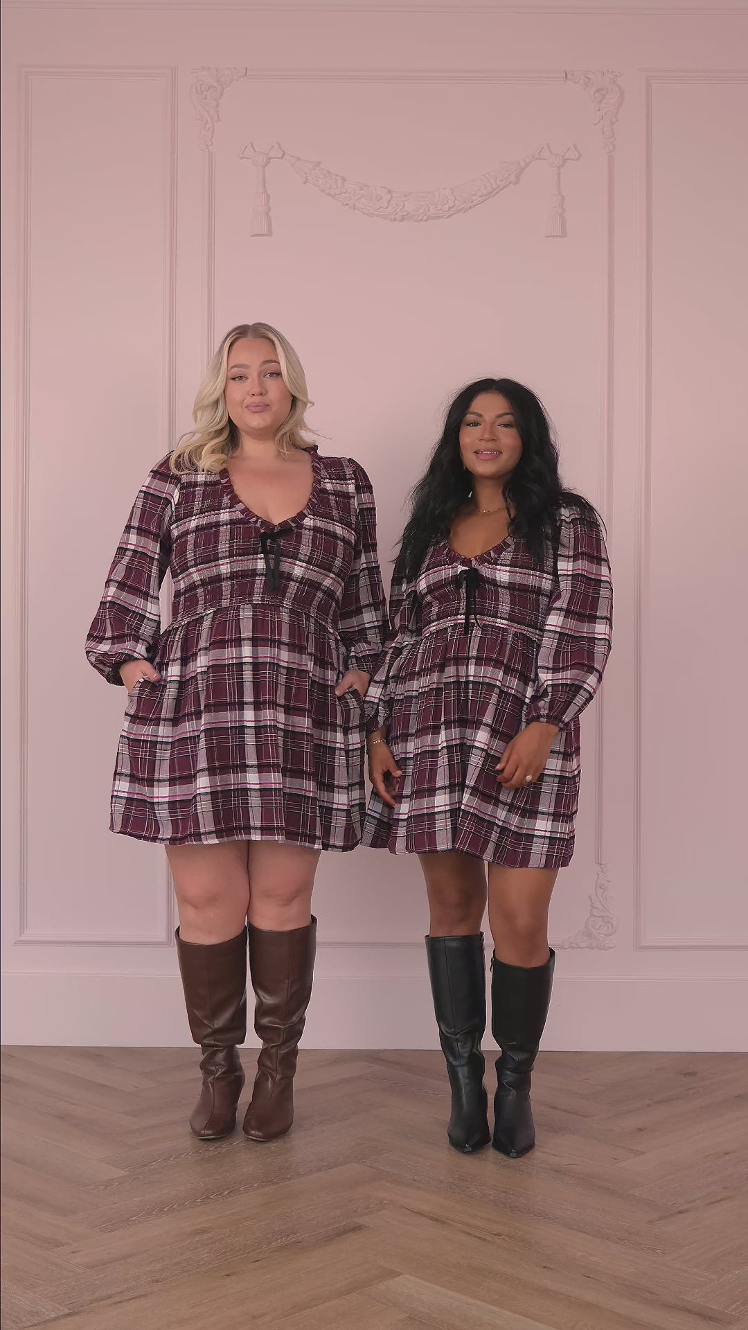 The Hailey Dress is cozy holiday charm in plaid. Designed with a smocked bodice, billowy long sleeves, and a velvet bow tie at the neckline, it blends comfort with festive style. The deep red and black checks make it a perfect choice for holiday gatherings, casual celebrations, or cozy nights by the fire. A playful yet elegant piece that feels merry all season long. Add another festive plaid to your holiday wardrobe with our Pyper Dress.